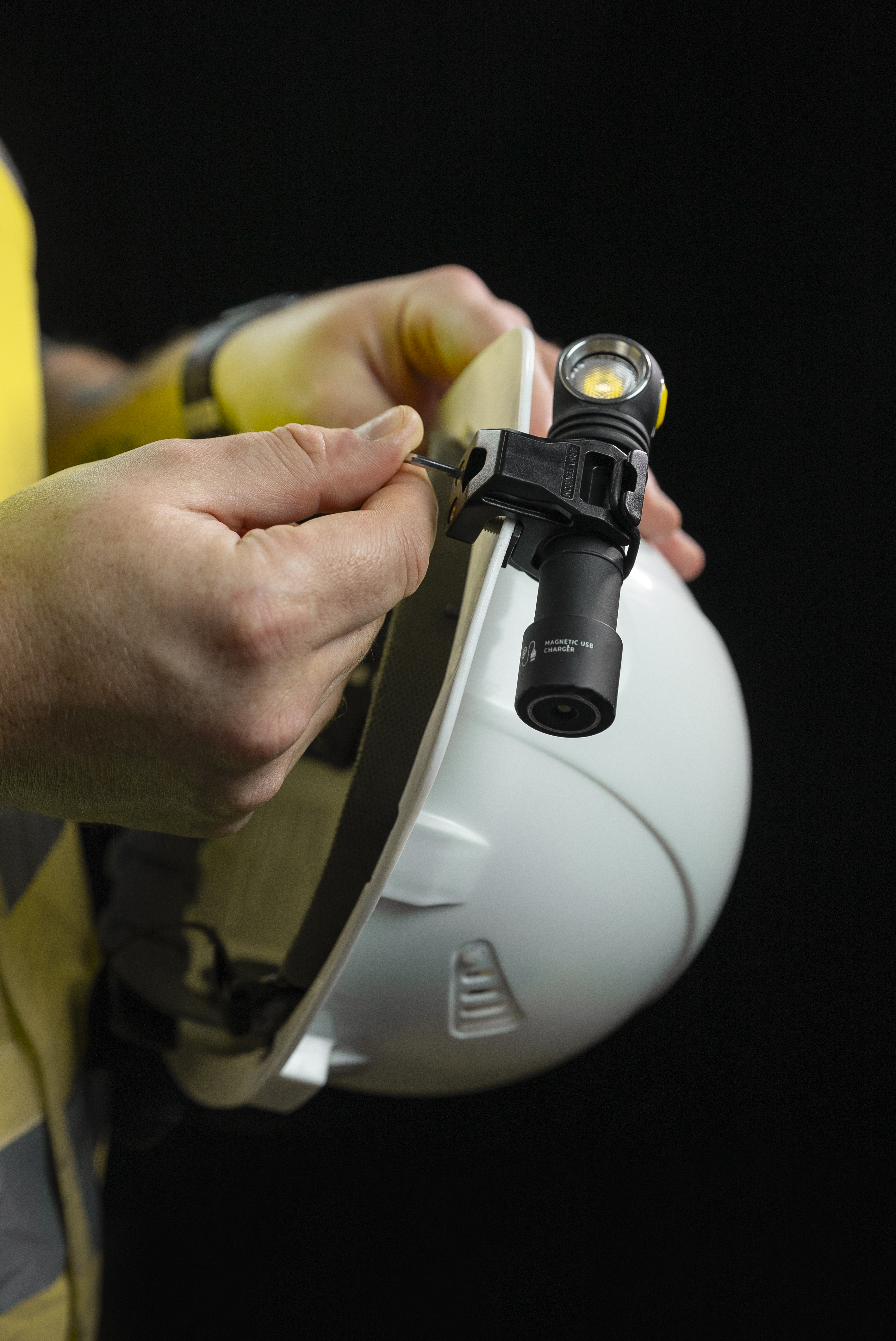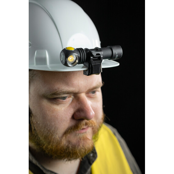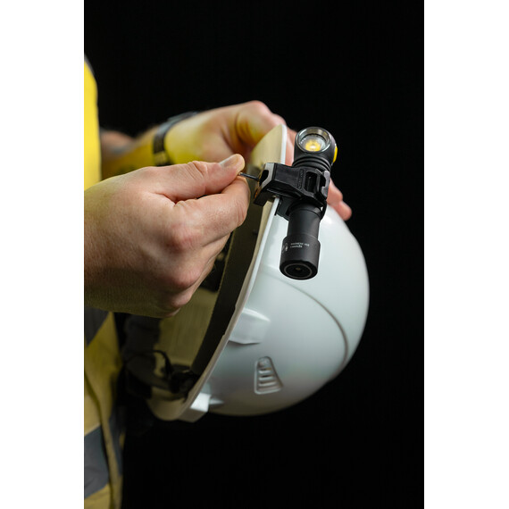The AHM-04 hard hat mount is designed for mounting an Armytek multi flashlight on a construction hard hat. The mount securely fixes a multi flashlight on a hard hat's peak, allowing for hands-free operation.