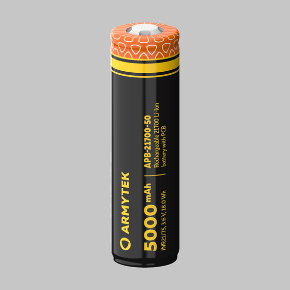 21700 Li-Ion batteries with a capacity of 5000 mAh provide maximum power and runtime for devices that operate at high amperage. The protection circuit board allows them to be used safely and efficiently even with the most powerful Armytek flashlights.