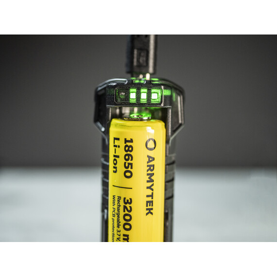 - Quick charge with 1A current and autodetection of 0.5A current for small batteries.