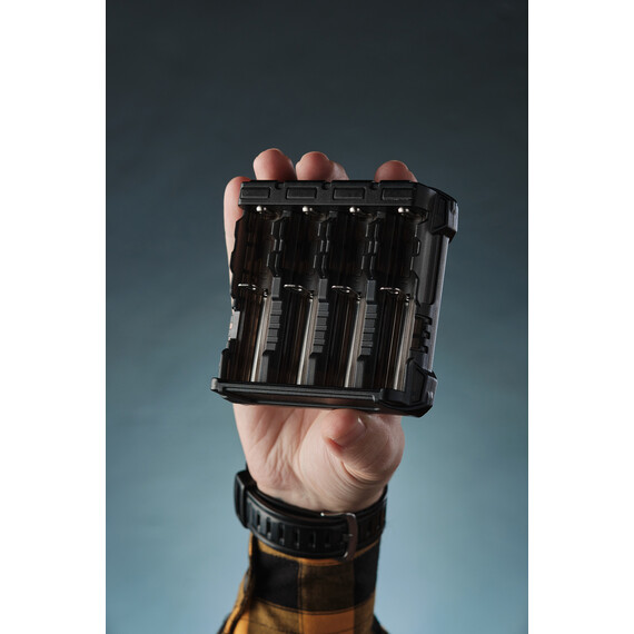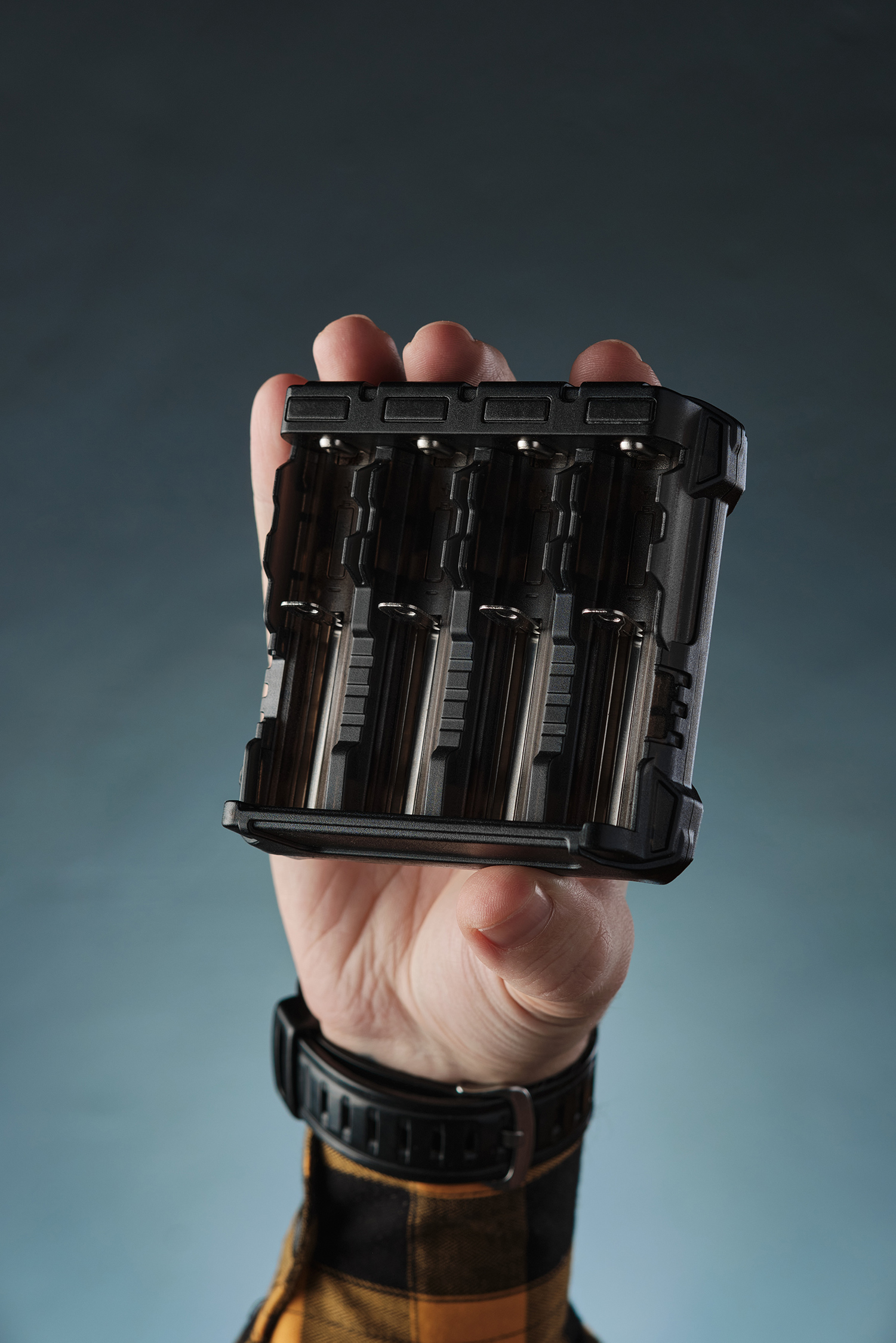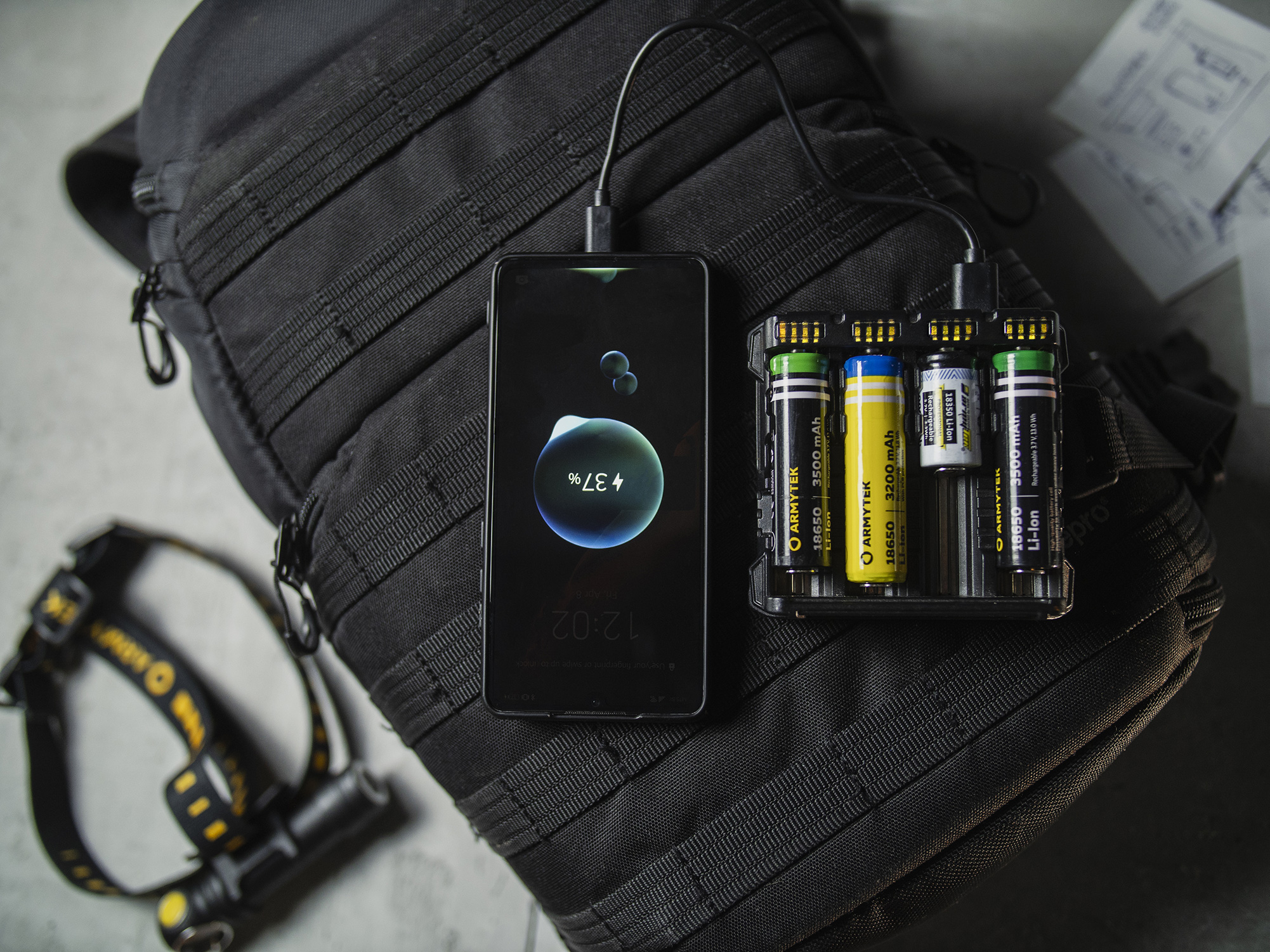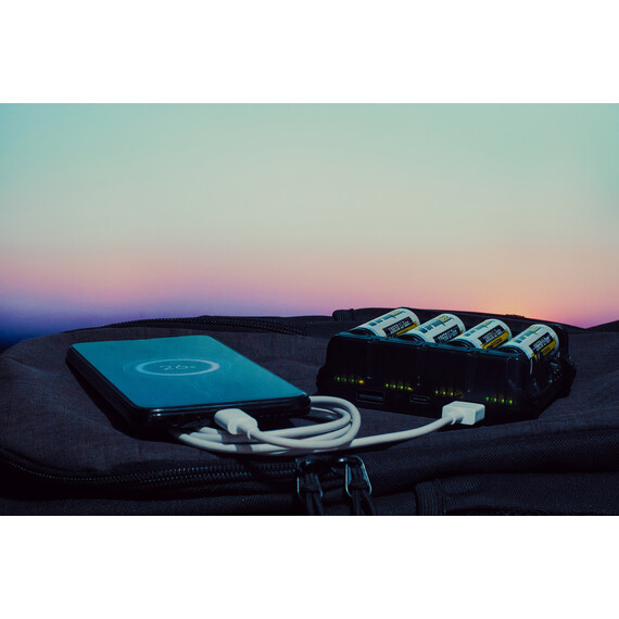 Handy C4 Pro is a portable charger for 4 batteries. Powerbank function supports devices with charge current up to 2.5A and is compatible with iPhone & iPad. Intelligent Powerbank Management System takes energy from any number of channels, ensuring maximum efficiency. Made with nonflammable material.