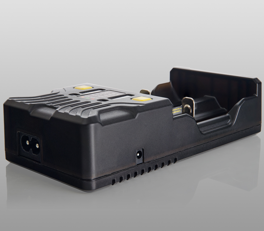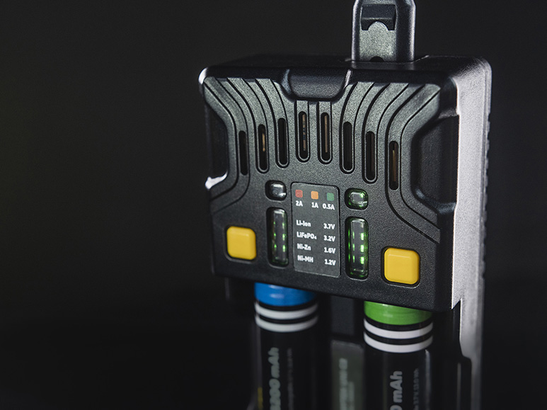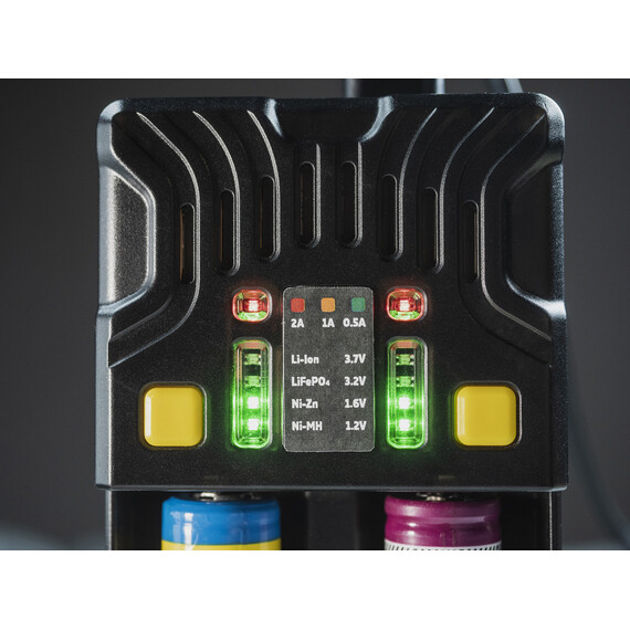 The battery charger lets to choose necessary current for each slot. Armytek Uni C2 uses a safe current of 0.1A to activate a "sleeping" battery. Maximum current 1A allows you to quickly charge the battery. LED indication of current level and battery level is always visible for each channel (without touching the button). The charging process stops automatically depending on the battery.