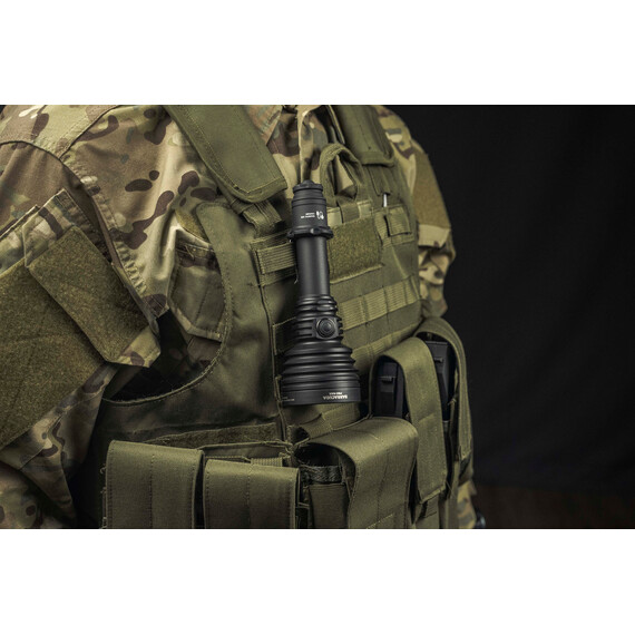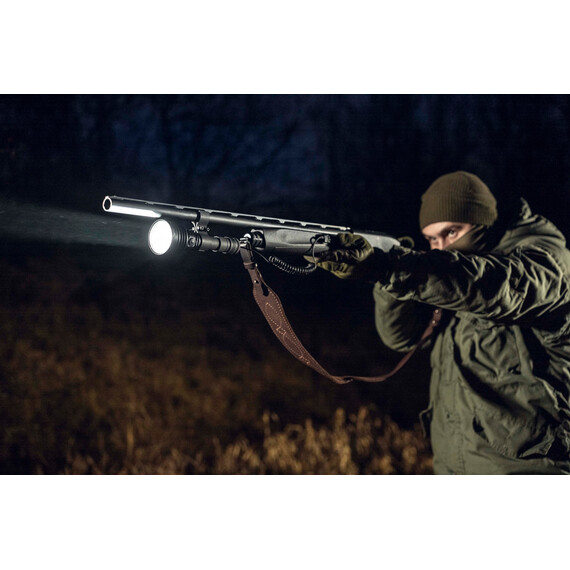 Barracuda Pro Max works not only on the included power supply, but also on any standard 21700 Li-Ion battery, as well as, thanks to the adapter, on an 18650 Li-Ion battery or two CR123A lithium batteries. The variability of the power supplies makes it possible to significantly increase the operating time. The flashlight is compatible with the original remote switches and weapon mounts and can be used as a tactical light.
