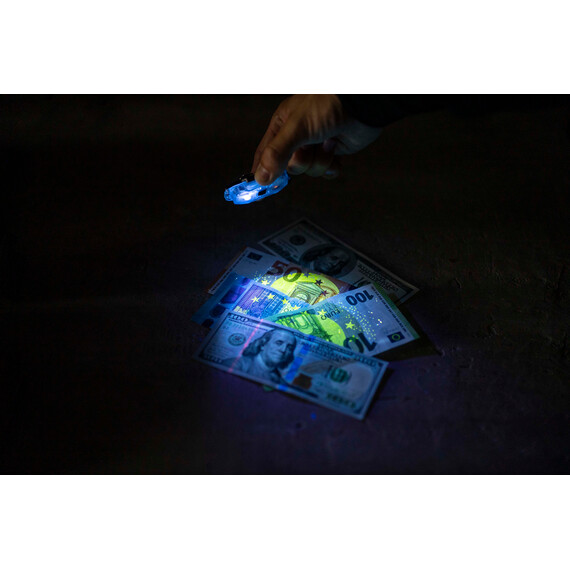 Crystal Pro UV can be used as a headlamp, attached to a belt or clothes, including specialized uniforms, carried on a strap or with keys. The model is also mounted on sporting gear using silicone rings. Body material and special arrangement of LEDs provide wide beam angle of 180°, optimal for close-range application.
