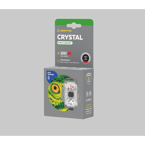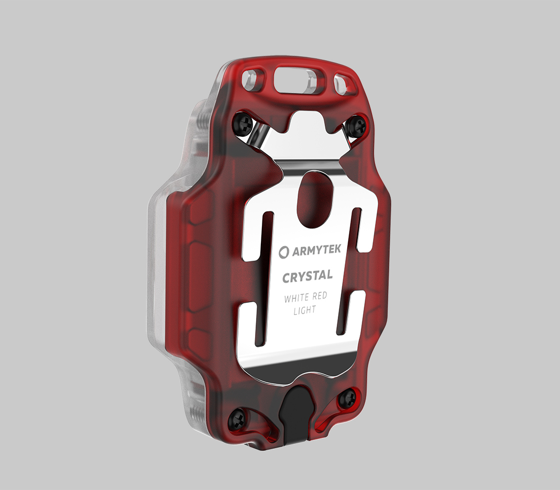 Crystal is a multifunctional model with bright red light up to 30 lumens and white light up to 150 lumens that easily fits in a pocket. Thanks to its fully luminous body and 140° wide spill, the flashlight is indispensable for close range everyday use: for jogging, cycling or garage works.