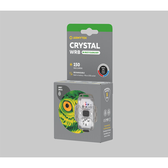 Design, body material and special arrangement of LEDs provide wide beam angle of 140°, optimal for use at a close distance. The flood beam makes Crystal WRB an excellent main or additional light source for jogging, cycling, car maintenance or day-to-day tasks. Besides the white light LED, Crystal WRB is equipped with the LED for use as a red-blue warning signal. Crystal WRB has capacious for the given size battery and works up to 50 days in minimum brightness mode.