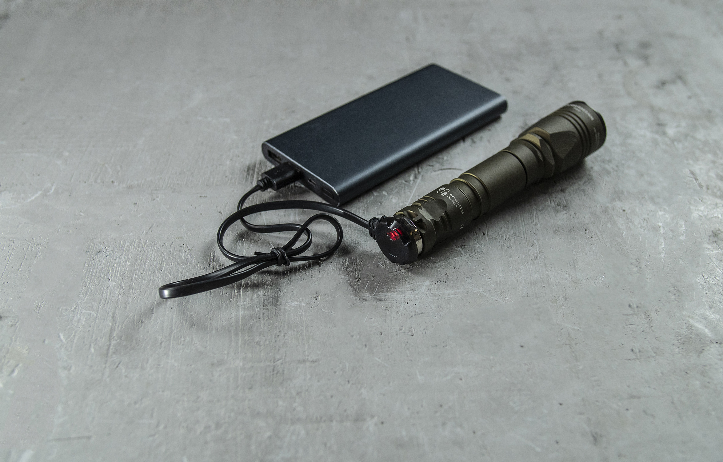 Extended set: high capacity battery 3500 mAh and fast magnetic USB charger included. The flashlight is ready to use right out of the box.