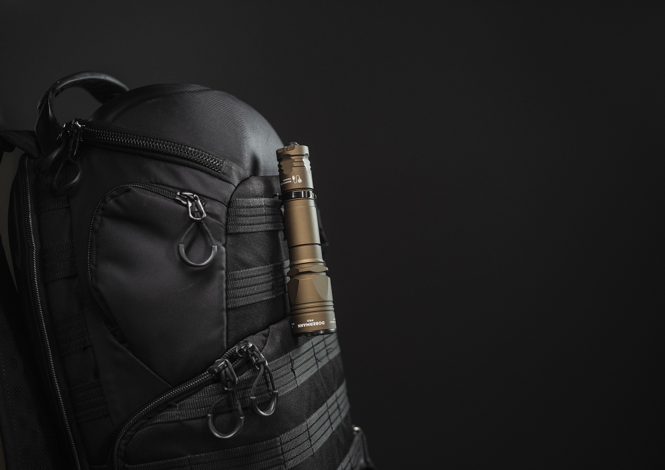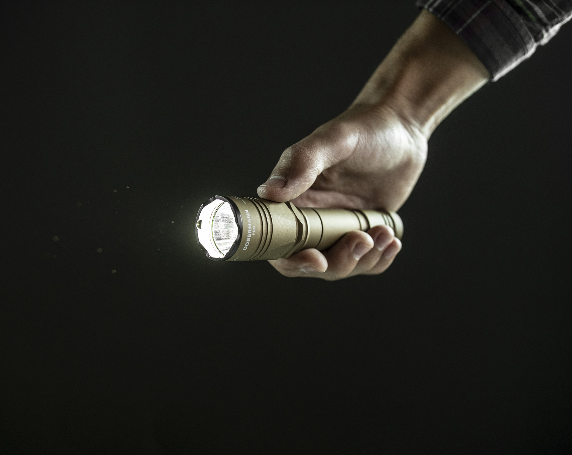 Dobermann Pro is a model with narrow beam of light and smooth transition between hotspot and spill. The combination of a compact body and impressive light characteristics makes Dobermann Pro a 2 in 1 flashlight for tactical and day-to-day application.