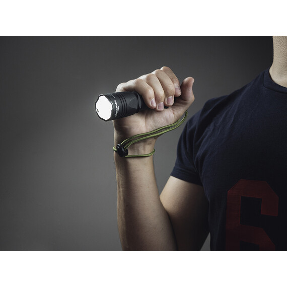 - Size-adjustable wrist lanyard made of heavy-duty paracord and steel carabiner for quick removal and installation on the flashlight