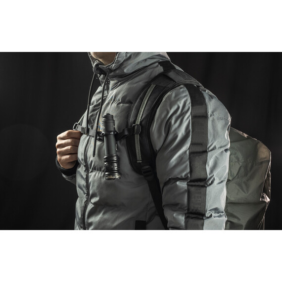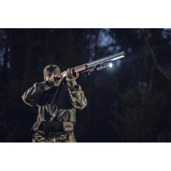 Dobermann Pro Max is compatible with the specially designed magnetic remote switch and original mounts for use as a mounted light. The model works not only on the included power supply, but also on any standard 21700 Li-Ion battery, as well as, thanks to the adapter, on an 18650 Li-Ion battery or two CR123A lithium batteries. The variability of the power supplies makes it possible to significantly increase the operating time.