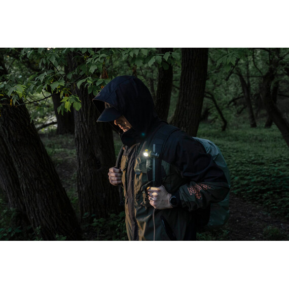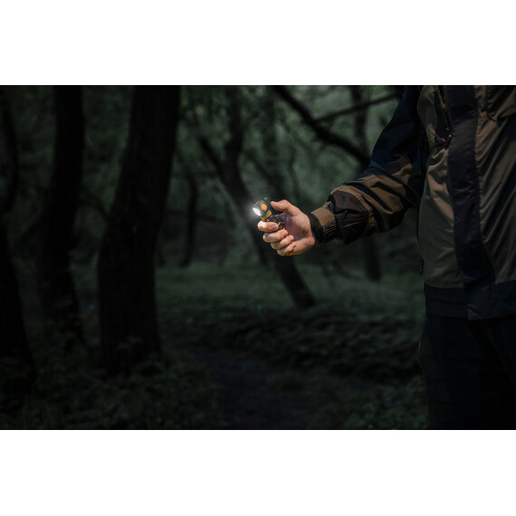 The flashlight can be used together with a headmount, fixed to clothes with a clip, as well as installed on metal surfaces thanks to the built-in magnet. Moreover, a special hole in the tailcap allows carrying Elf C1 along with the keys. The model is also compatible with optional accessories: with the ABM-01 bicycle mount for cycling and with the AHM series hard hat mounts for industrial works and mountaineering.