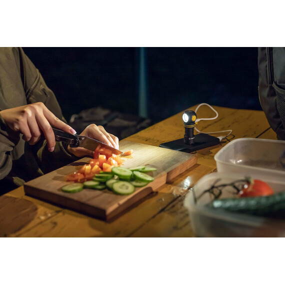930 lumens in a body weighing only 55 grams. Elf C1 is a great main or additional light source for any daily activity. You can take the flashlight with you for an evening walk, when fishing or hiking. It will easily fit in any bag and won't require recharging throughout 2 months of minimum brightness. Elf C1 also works in a lamp mode — directly from any power supply with USB output, no battery inside. The universal charging slot eliminates the need to constantly carry the charger around: a standard USB-C cable from any manufacturer will do.