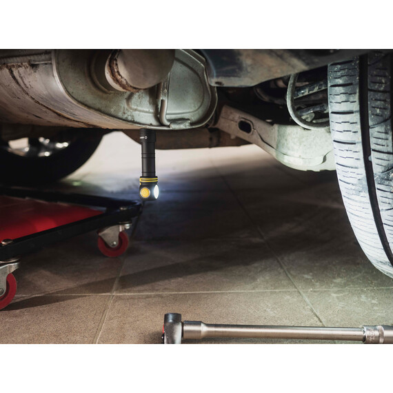 Thanks to the built-in magnet, as well as an included steel clip and a headmount, the flashlight can be fixed on the head, clothes or on metal surfaces. Elf C2 is also compatible with optional accessories: with the ABM-01 bicycle mount for cycling and with the AHM series hard hat mounts for industrial works and mountaineering.
