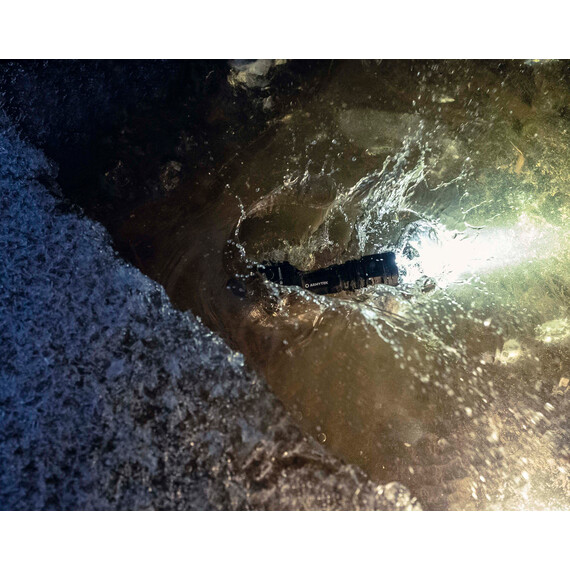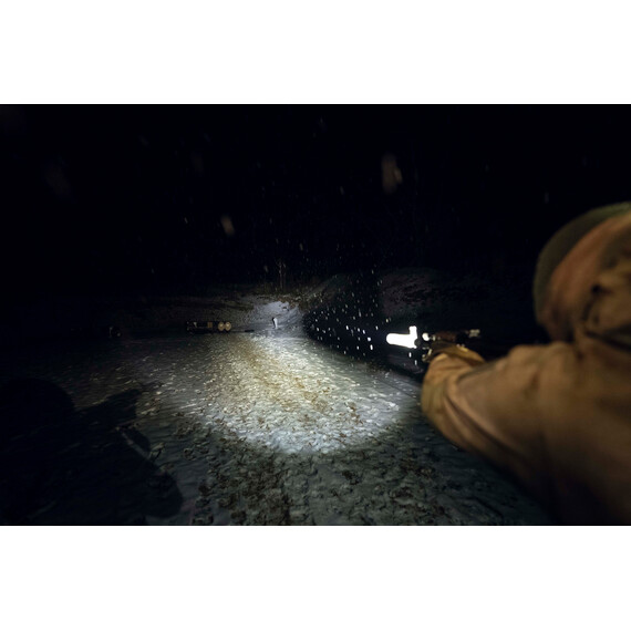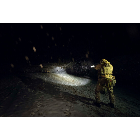 White light with an impressive for the given dimensions brightness of 1500 lumens and beam distance of 350 meters allows to effectively perform standard tasks in low visibility conditions.