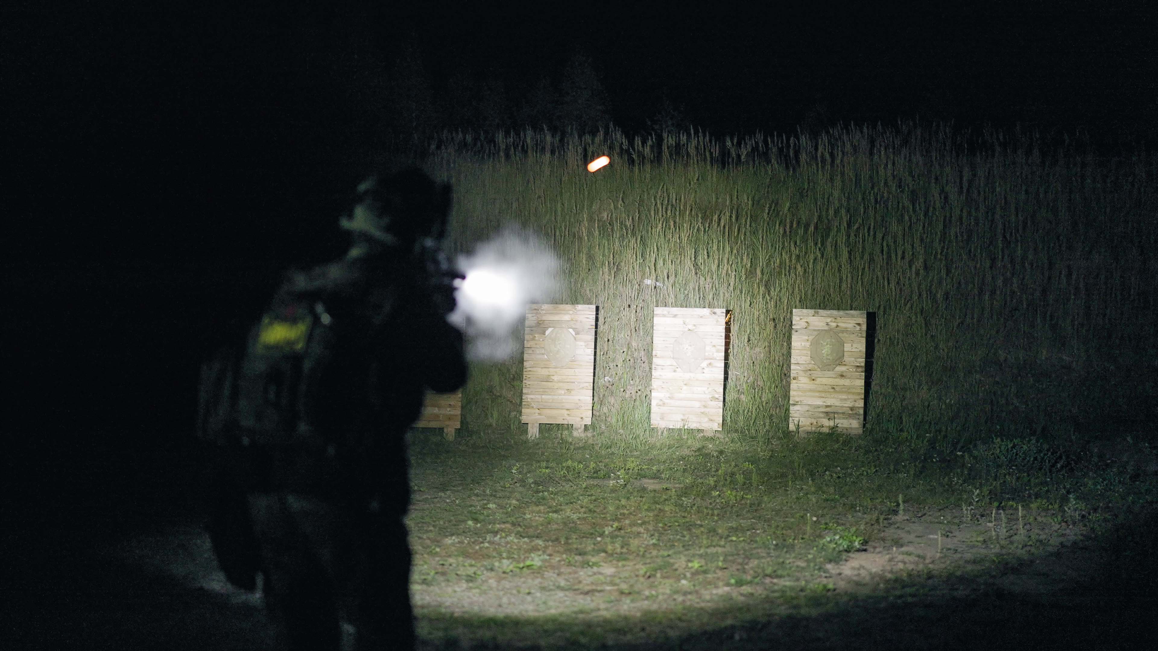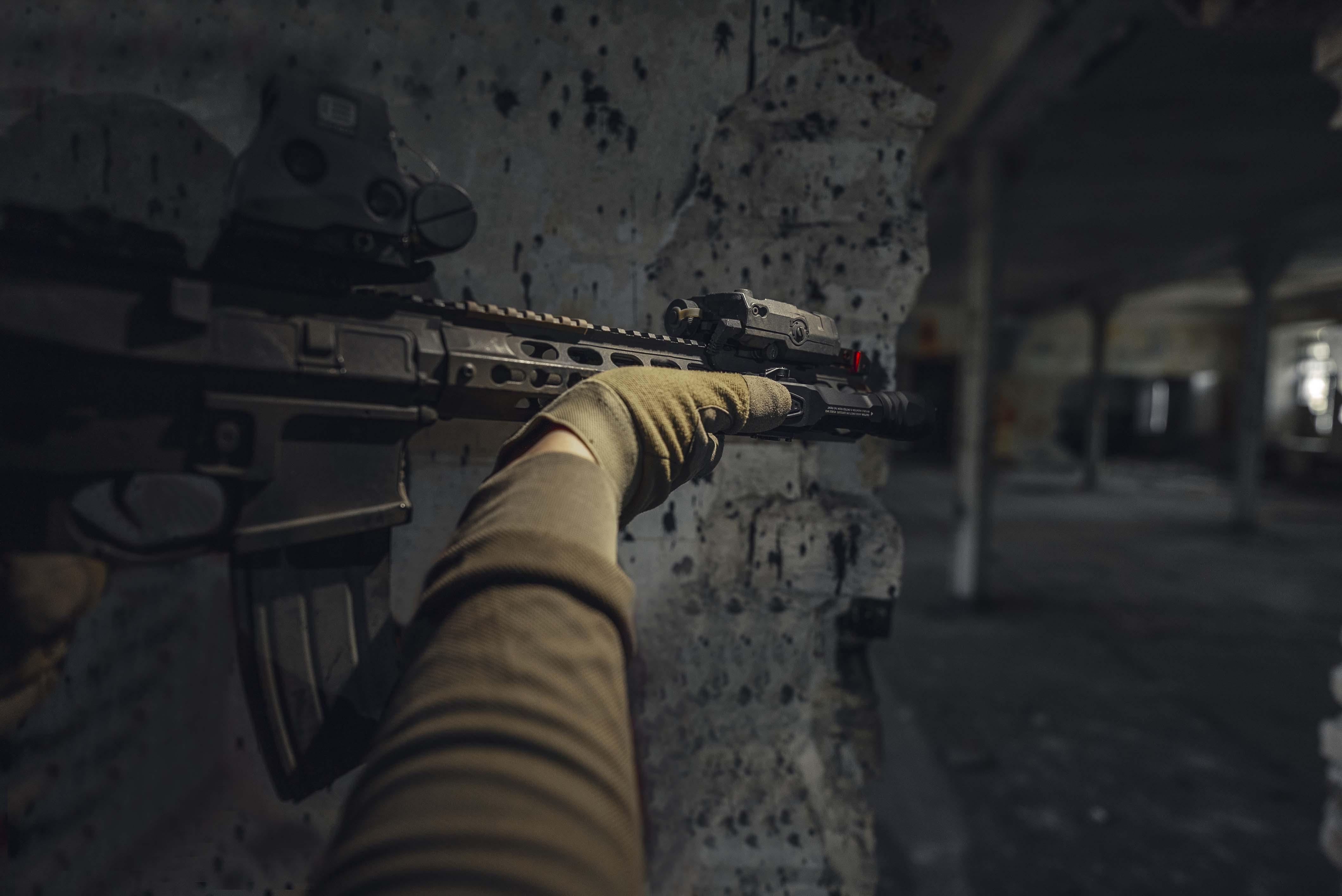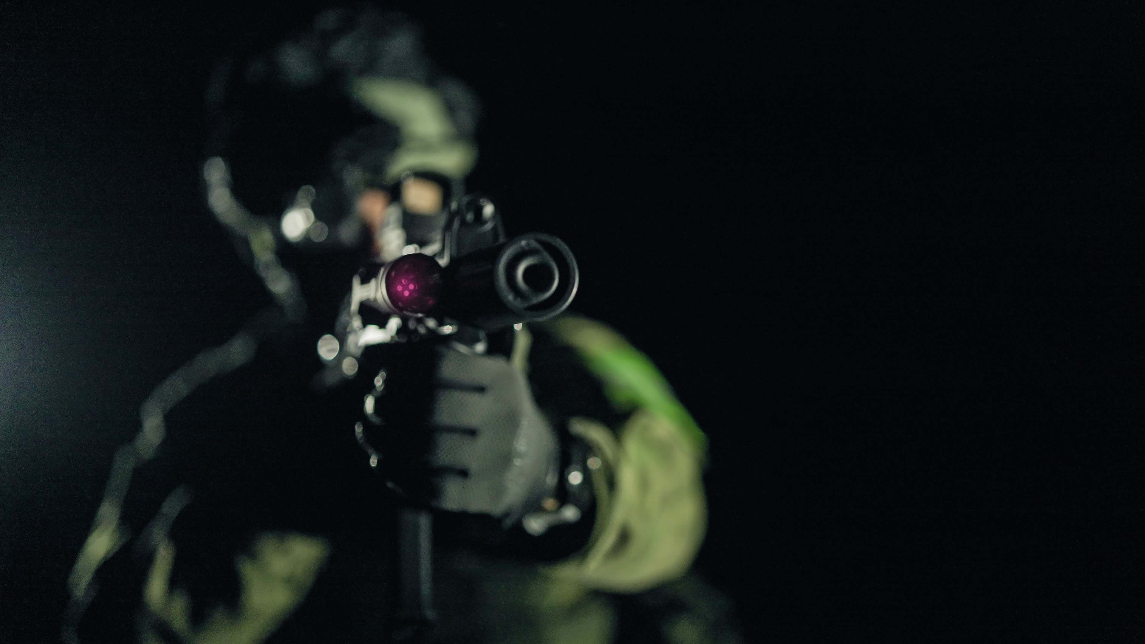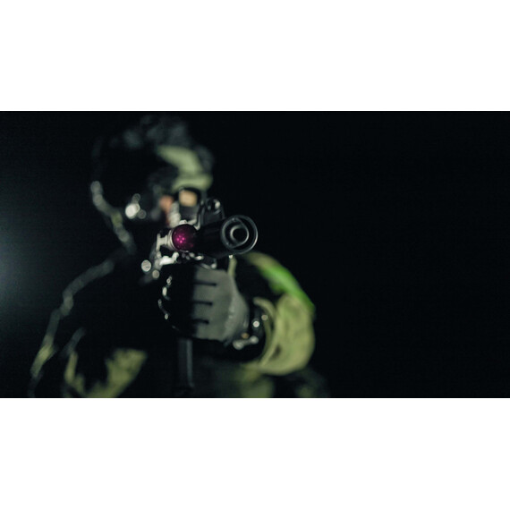 - White light for illumination and preliminary aiming at the target using the spot of light, Strobe mode for disorienting the adversary